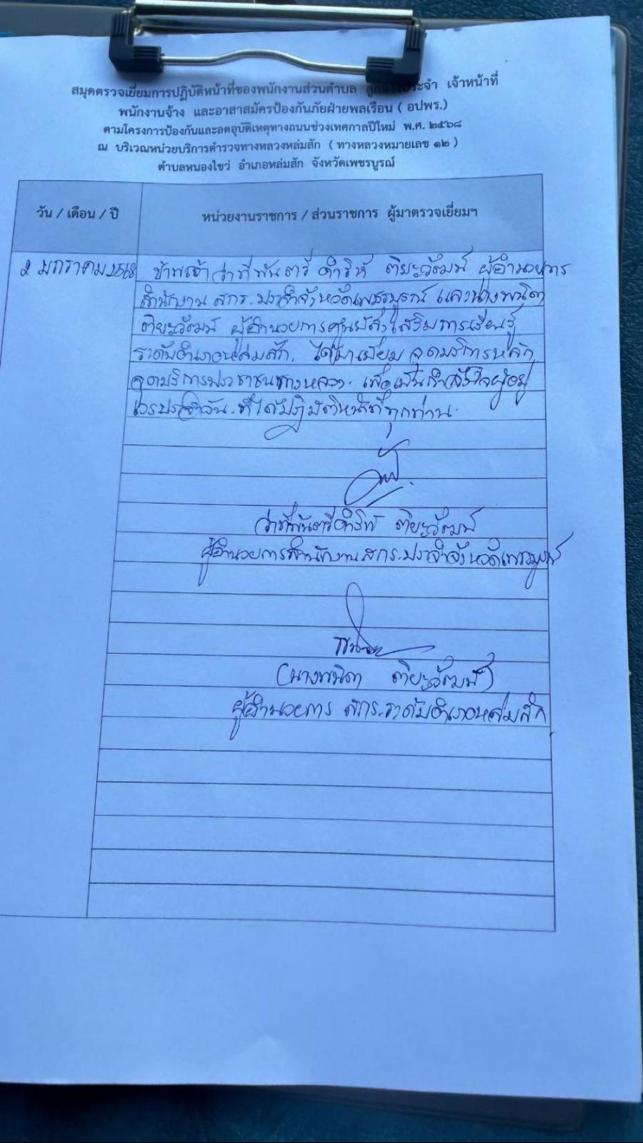 วันที่ 2 มกราคม 2567 นางพนิดา ติยะวัฒน์ ผู้อำนวยการสถานศึกษาศูนย์ส่งเสริมการเรียนรู้ระดับอำเภอหล่มสัก ตรวจเยี่ยมจุดบริการประชาชน โครงการป้องกันและลดอุบัติเหตุทางถนนช่วงเทศกาลปีใหม่ พ.ศ. 2568ณ หน่วยบริการตำรวจทางหลวงสี่แยกพ่อขุนผาเมือง หมู่ที่ 4 ตำบลหนองไขว่ อำเภอหล่มสัก จังหวัดเพชรบูรณ์ S:0