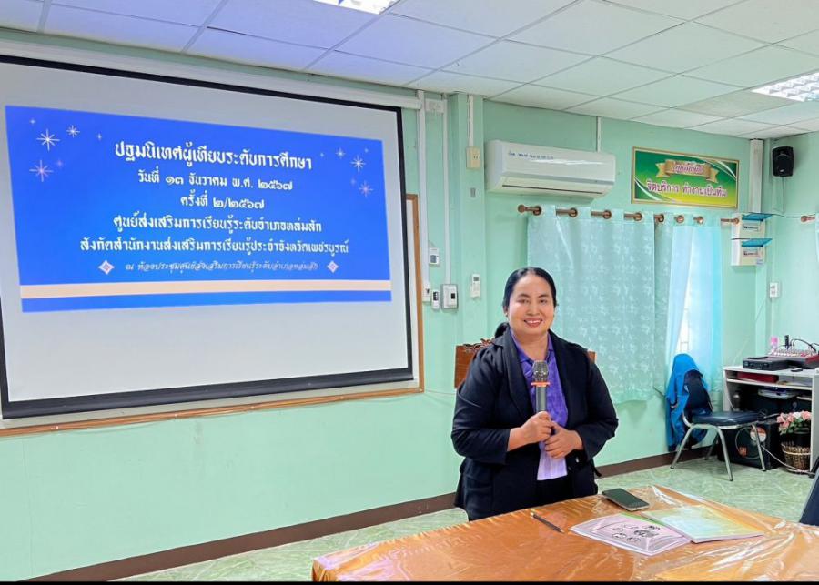 วันที่ 13 ธันวาคม 2567 นางพนิดา ติยะวัฒน์ ผู้อำนวยการสถานศึกษาศูนย์ส่งเสริมการเรียนรู้ระดับอำเภอหล่มสัก พร้อมด้วย บุคลากร สกร.ระดับอำเภอหล่มสัก จัดกิจกรรมปฐมนิเทศผู้เทียบระดับการศึกษา ภาคเรียนที่ 2 ปีการศึกษา 2567 ณ ห้องประชุมศูนย์ส่งเสริมการเรียนรู้ระดับอำเภอหล่มสัก จังหวัดเพชรบูรณ์ S:0